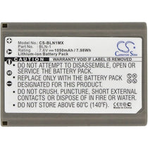 Premium-quality replacement battery for CS-BLN1MX camera. This aftermarket battery is designed for long-lasting performance and is 100% compatible with CS-BLN1MX equipment. It is manufactured to meet high standards for safety, fit, and function, and is guaranteed to maintain at least 80% of its rated capacity for 12 months from the date of shipment.