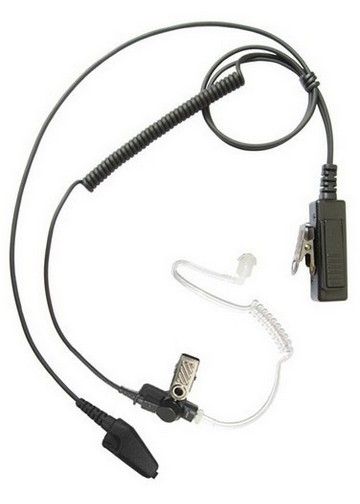 Rugged lapel mic with surveillance style acoustic tube earphone.