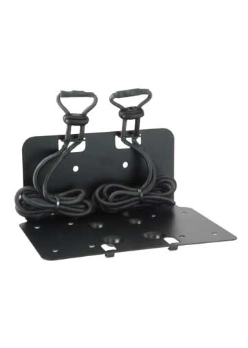 Universal dual bay in-vehicle rapid charger with drop-in adapter pods, vehicle power adapter, tie-down strap, and mounting bracket for Ma-Com-Ericsson Jaguar P7100P radios and batteries.