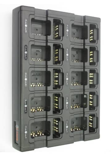 Fast, reliable charge for up to twenty batteries - ten batteries with or without radio and a second set of ten spare batteries without radio only.