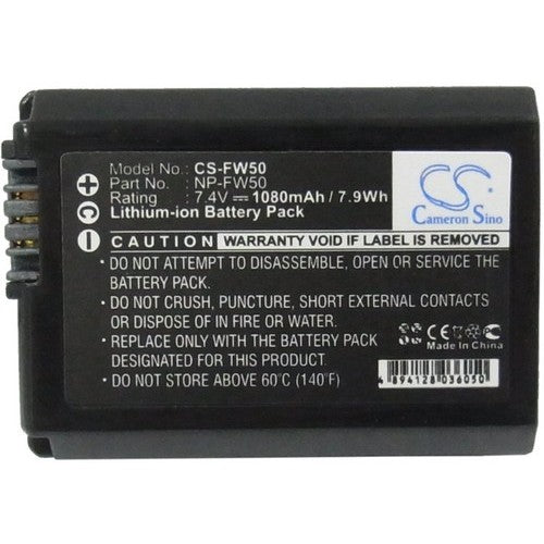 Premium-quality replacement battery for Sony NP-FW50 camera. This aftermarket battery is designed for long-lasting performance and is 100% compatible with Sony NP-FW50 equipment. It is manufactured to meet high standards for safety, fit, and function, and is guaranteed to maintain at least 80% of its rated capacity for 12 months from the date of shipment.